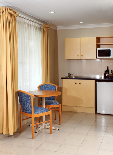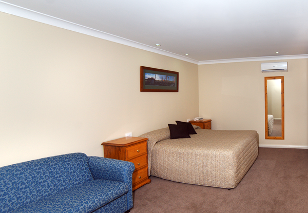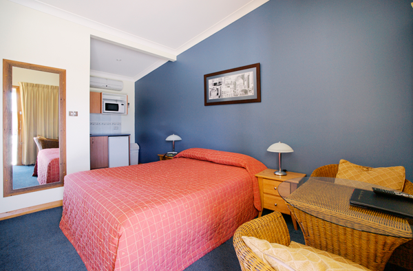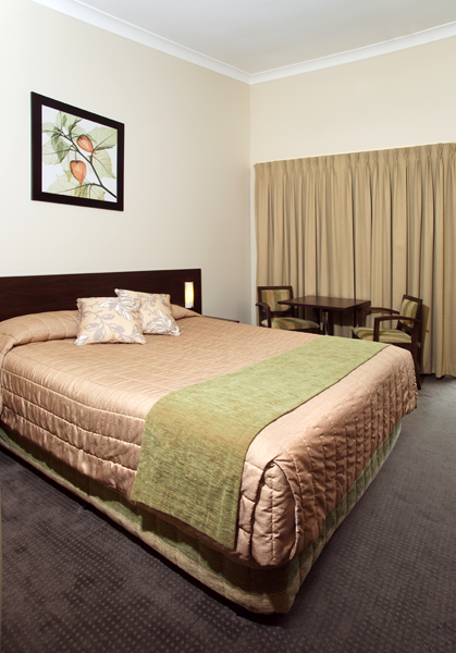 Executive Queen Room - from $145 per nightTravellers retreat! roomy and comfy♦♦♦♦♦ Bedding configuration is a queen bed and double sofa bed. Extra features: kitchenette, spacious, quiet, lounge, shower only, large flat screen TV, a split system air conditioners/heater and FREE wifi. Rates are for 2 people. Extra adults $15. Extra children $15. The room caters for a maximum of 4 guests. Single room rate from $145 per night (call only). |